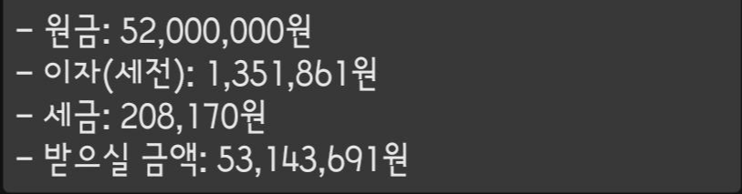 원금 기준 5200만원, 이자는 130만원 들어왔다.