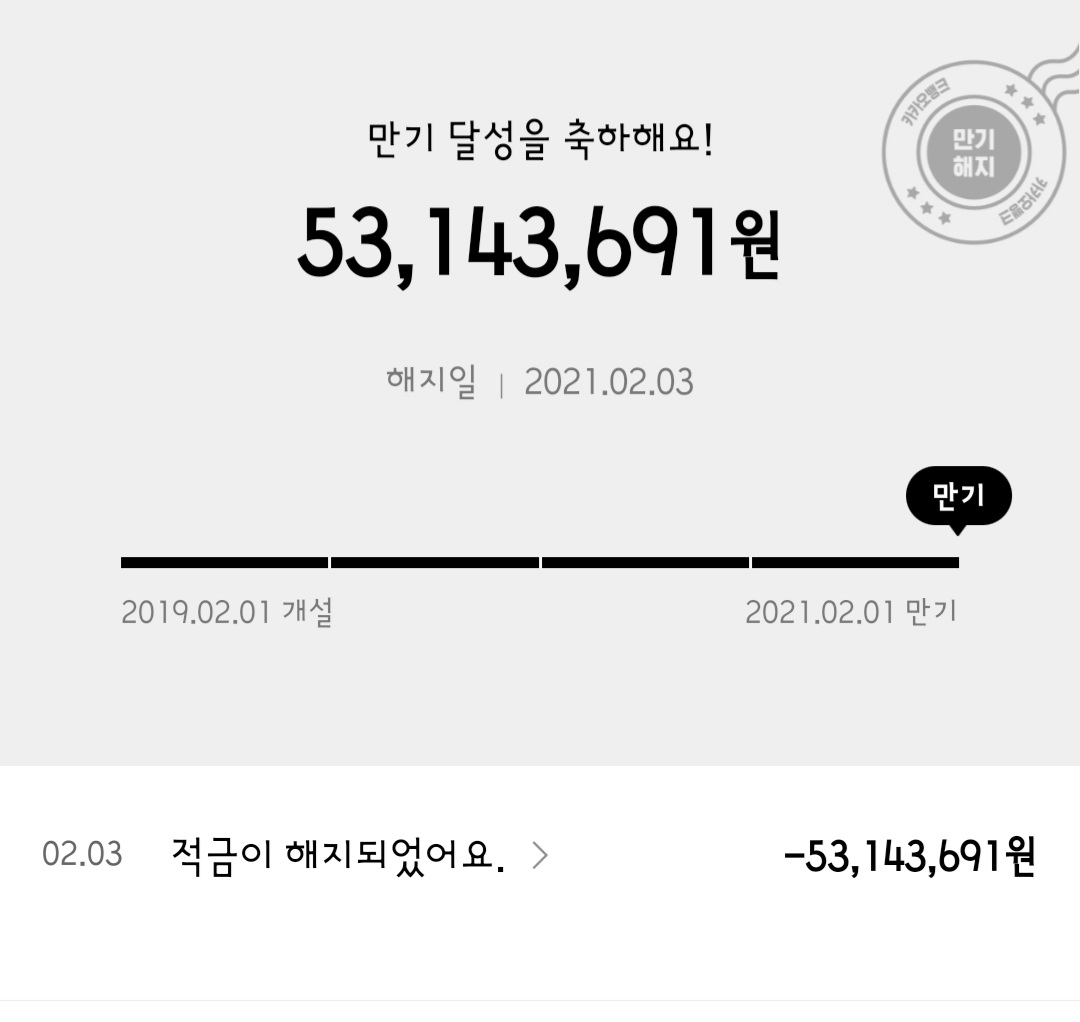 2019년 2월에 시작한 2년짜리 5000만원 카카오적금 드디어 만료