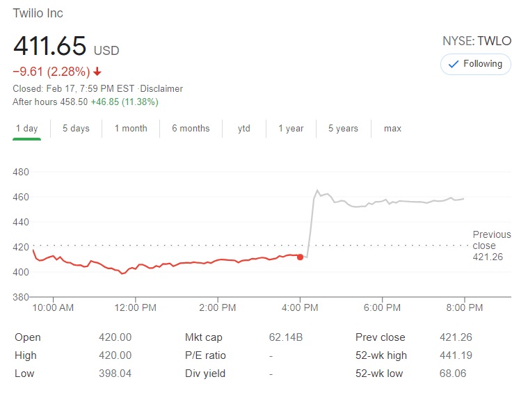 Twilio, Inc. (NYSE: TWLO) Q4 2020 earnings call dated Feb. 17, 2021