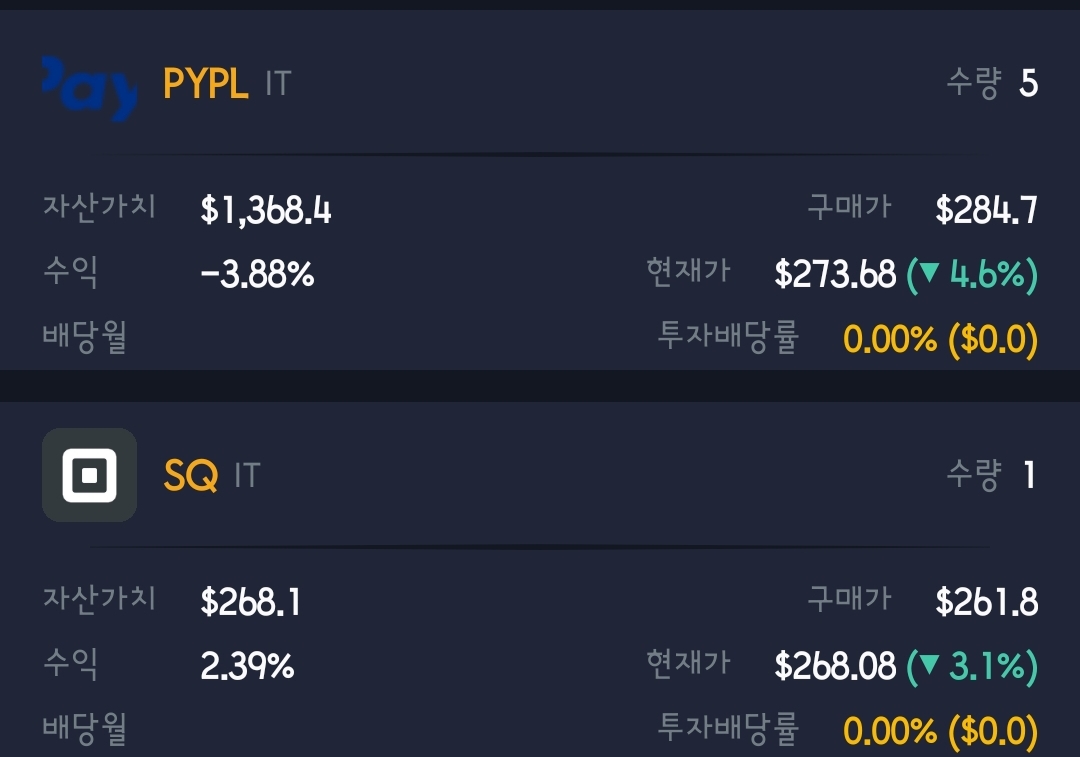 연초부터 든든한 페이팔과 스퀘어. 올해들어 비트코인 광풍으로 변동성 편승되어 덩달아 휘청이지만 ㅠㅠ