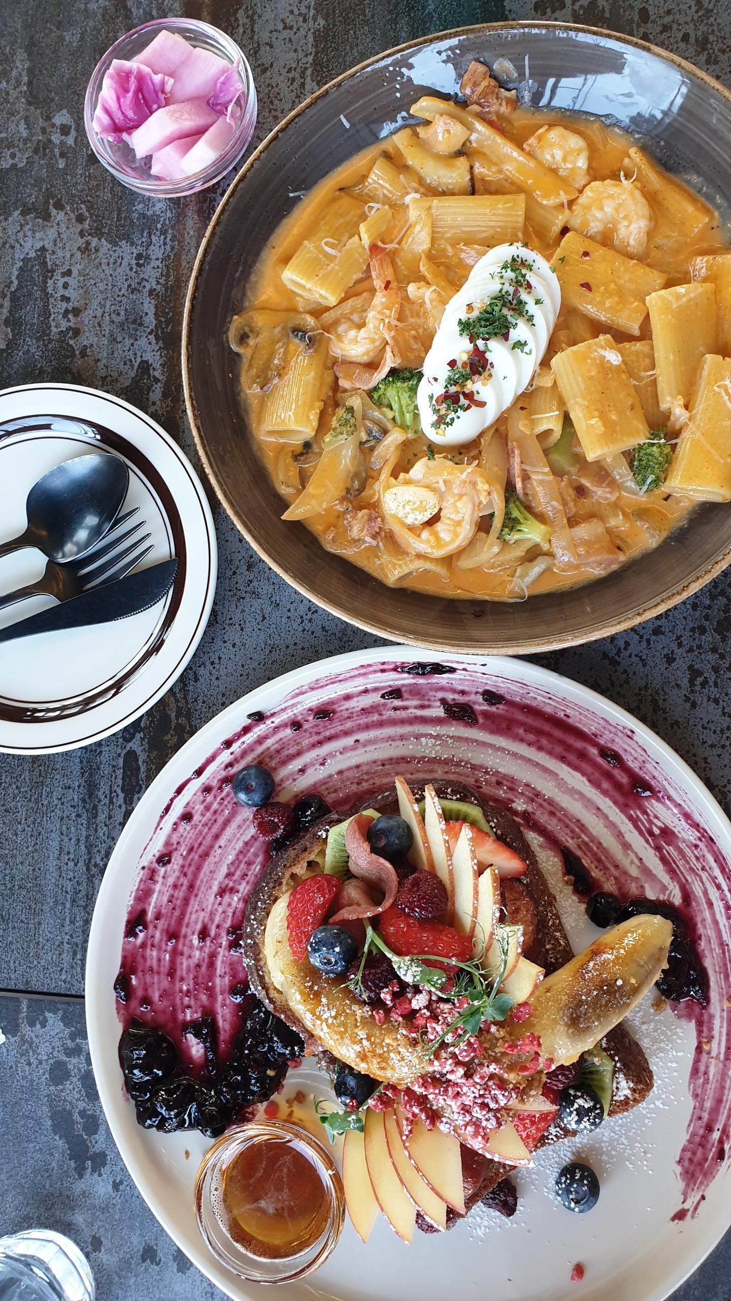 프렌치토스트와 투움바 파스타, 에그 베네딕트를 주문했다.