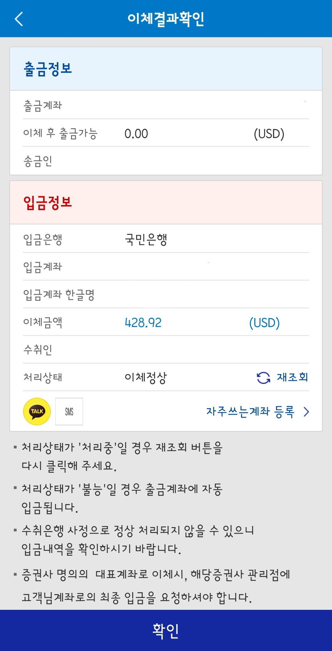 이제 은행 간 이체만 실행하면 됩니다.