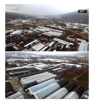 경마장 길 건너에 자리한 거대한 비닐하우스촌