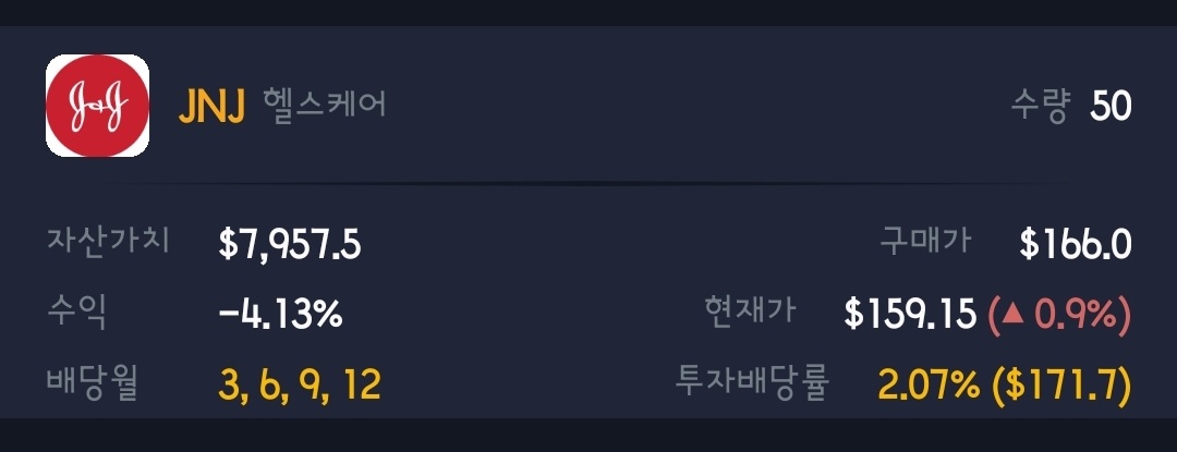 연초 장기투자 종목으로 배당주를 사냥하던 중 JNJ 투자를 결정했다.