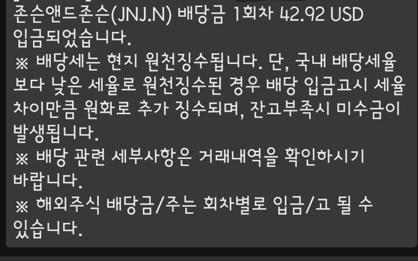 주당 $1.01 * 50주 * 세후 0.85 하여 $42.92 달러가 입금 되었다.