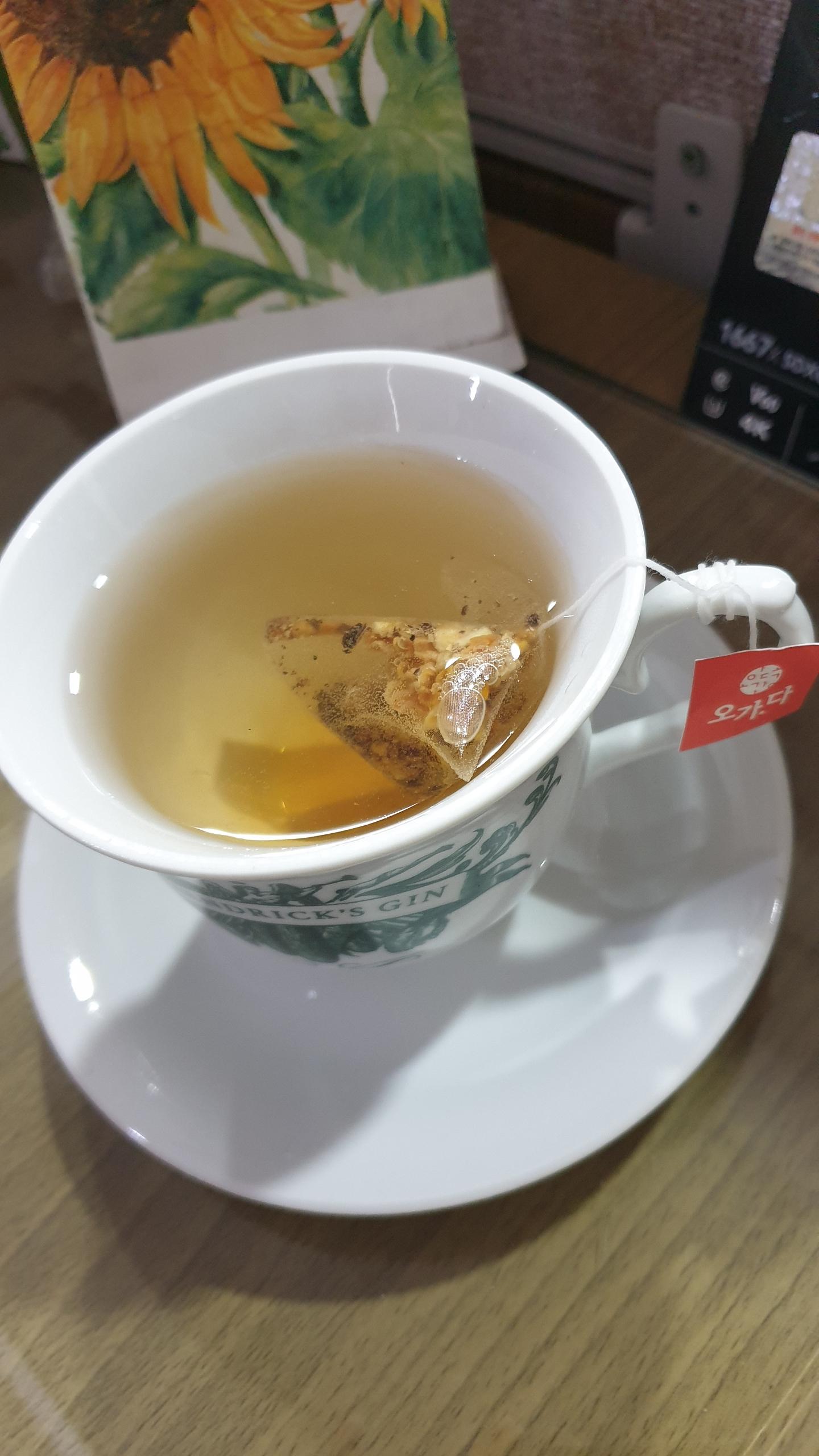 정수기에서 물을 떠와서 자리로 앉는 짧은 순간에 벌써 물이 잘 우러나온다.