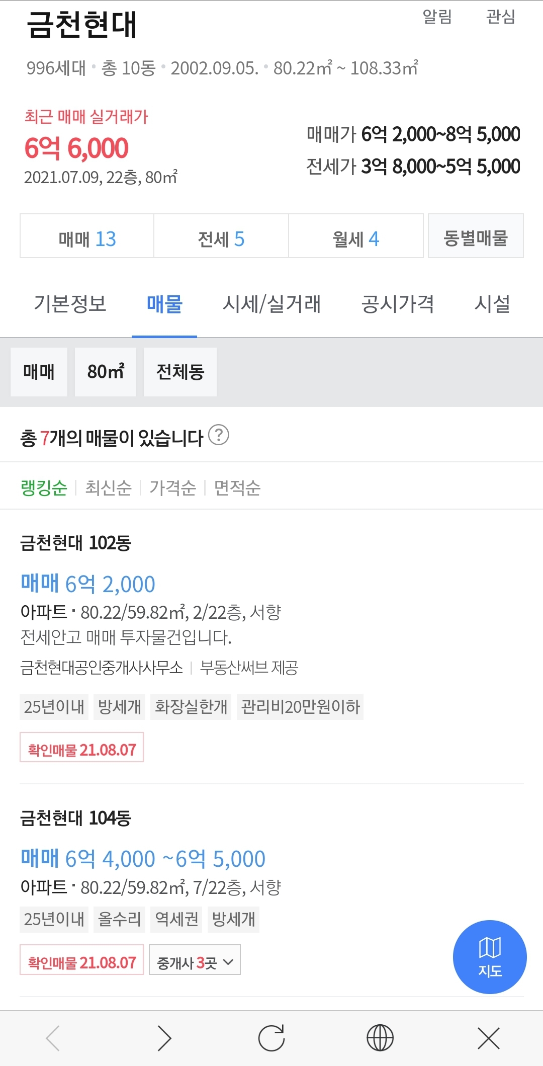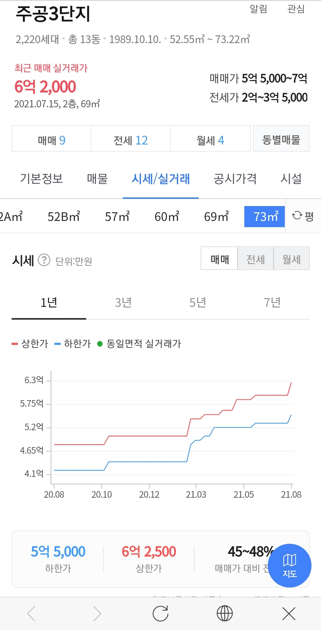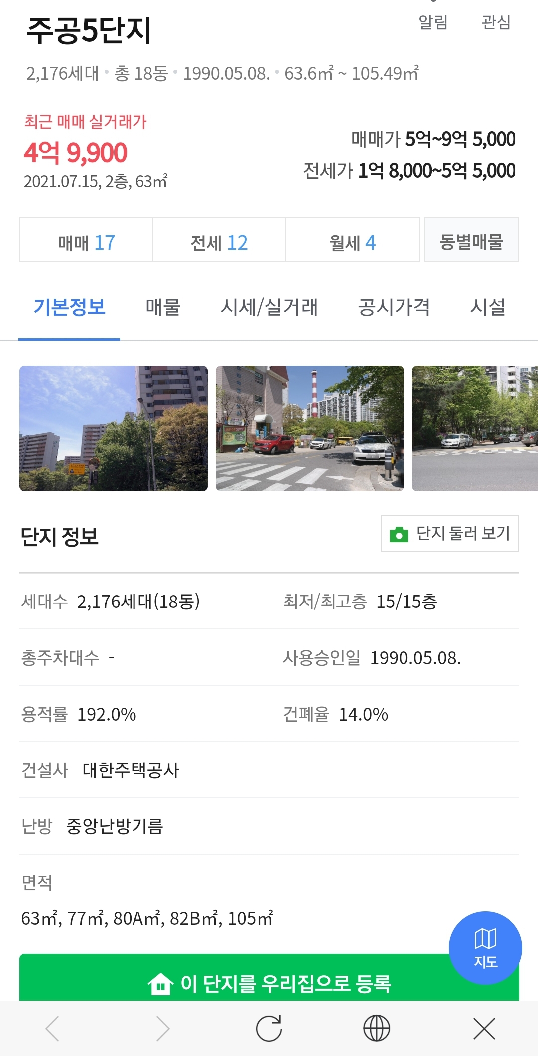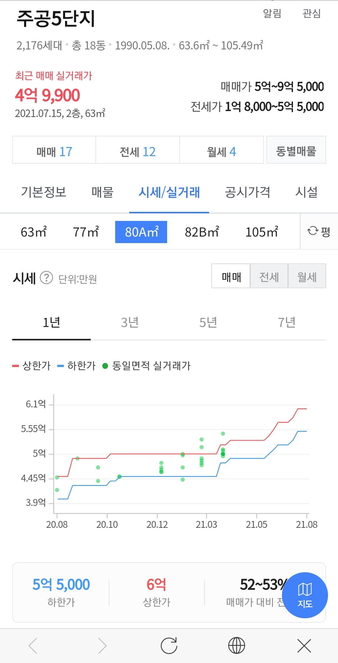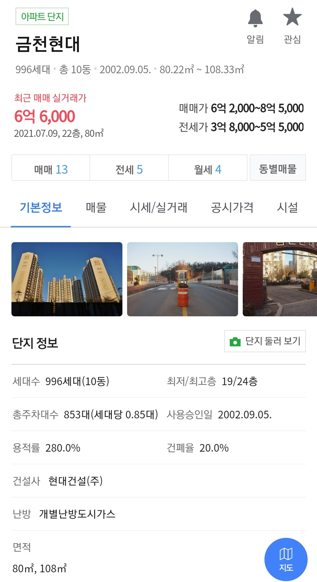 1. 하얀주공5단지는 예산 6억으로 매입가능, 3단지는 예산 6억 5천으로 매입 가능