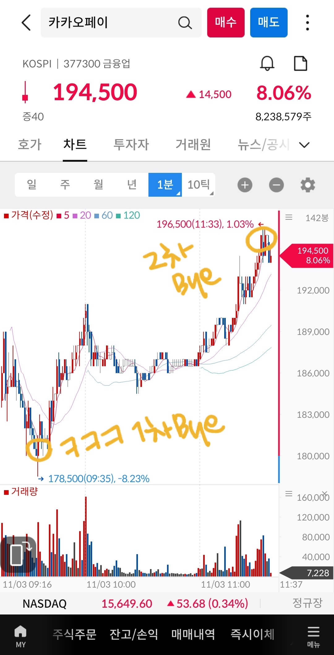 누군가의 표현을 빌리면 어제 카카오페이 상장은 대국민 단타대회 였는데