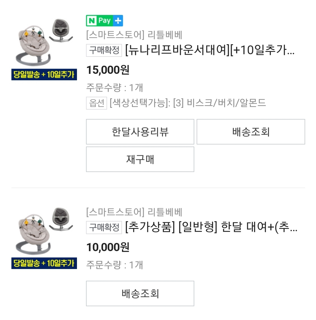 네이버 검색을 통해 가장 후기 많은 리틀베베 업체에서 바운서를 대여했다.