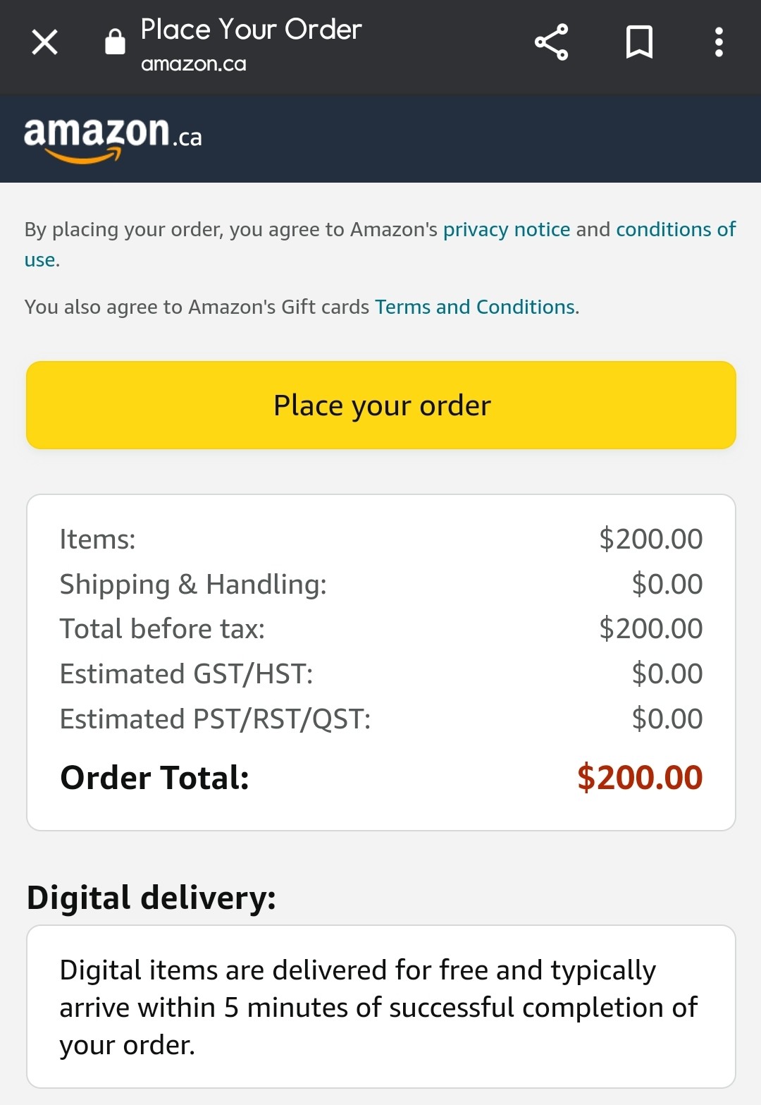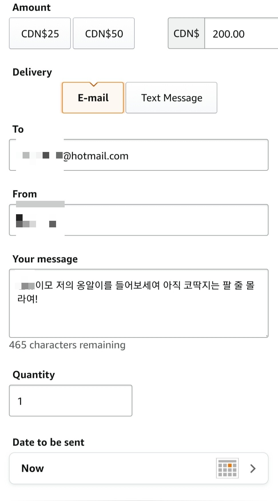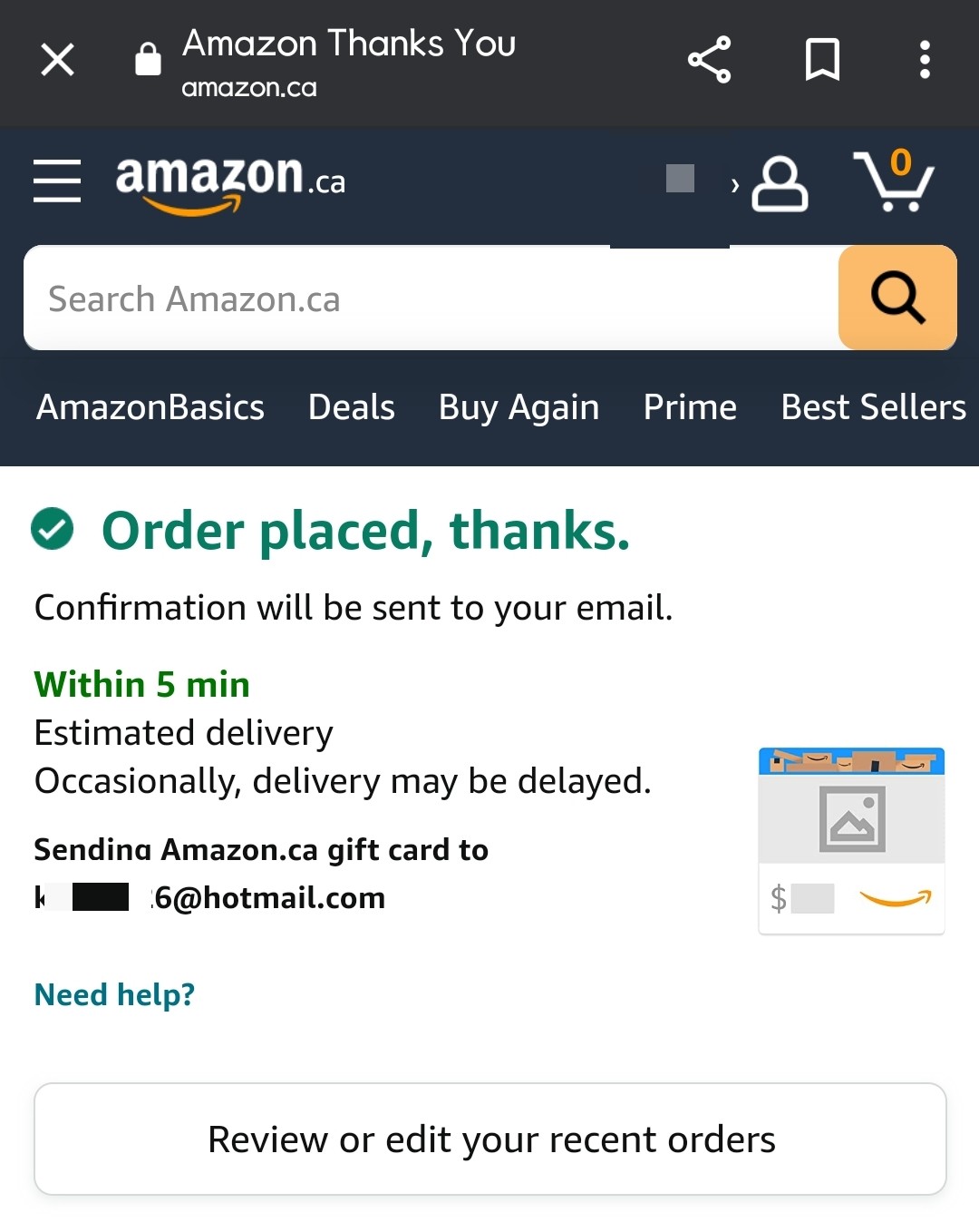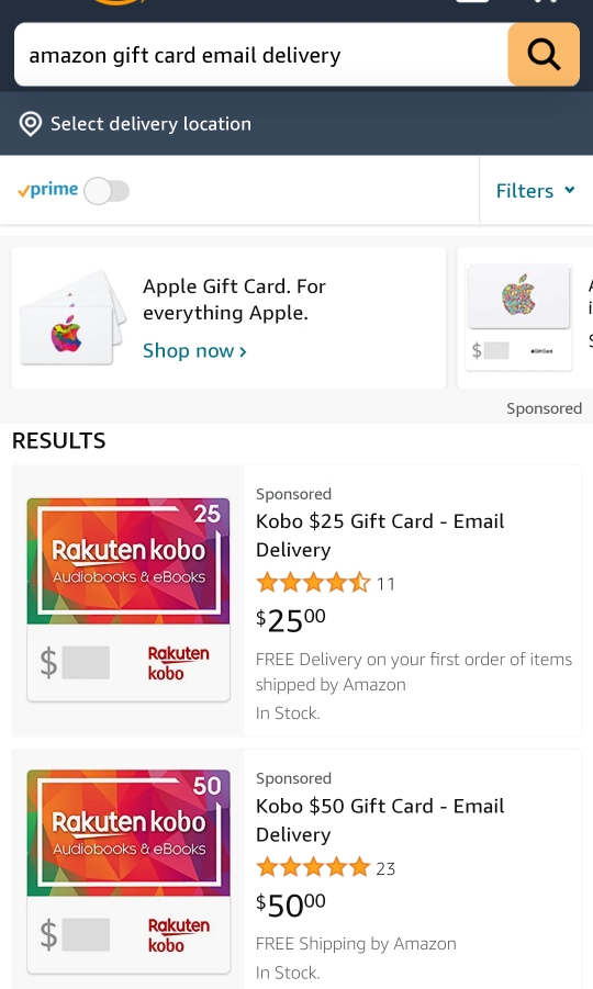 검색어는 Amazon gift card email delivery!