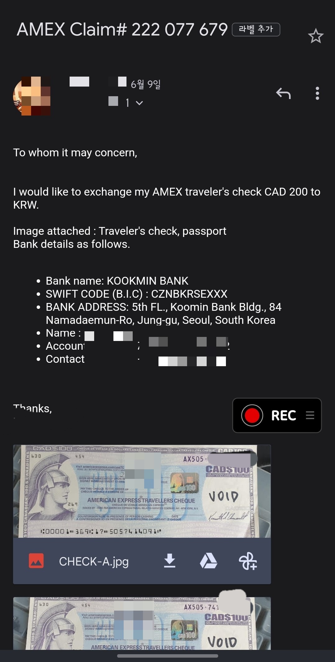 - 수신인 정보 : 이름, 계좌번호, 전화번호, 여권사본
