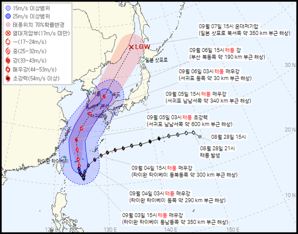 힌남노 태풍 변경 된 업데이트 경로 입니다.