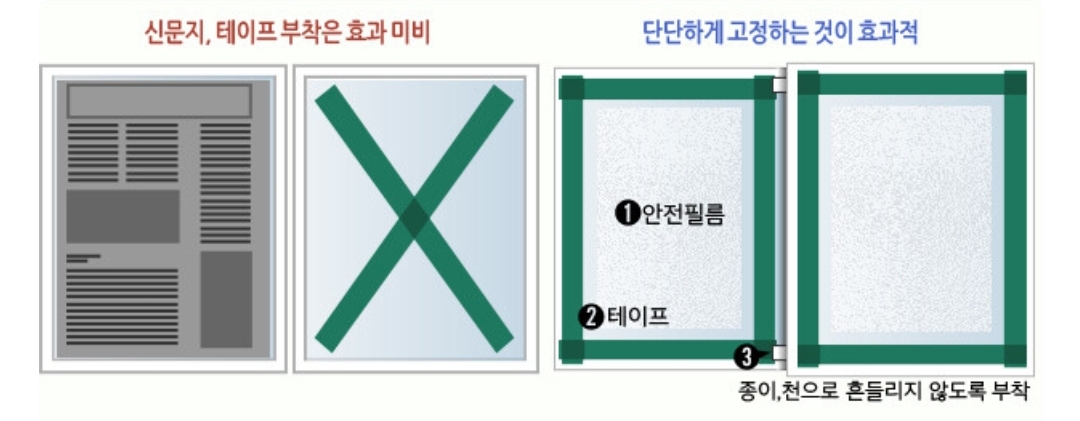 예전에는 신문지나 테이프를 X자로 붙였는데